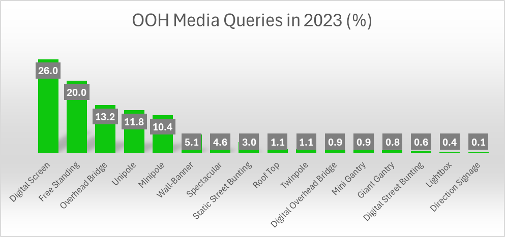 In 2023, there's a clear new contender – digital billboards. This surge in popularity likely reflects Malaysia's growing embrace of the digital landscape. Brands are recognizing the power of integrating digital elements into their OOH strategies, allowing for more dynamic and engaging campaigns.