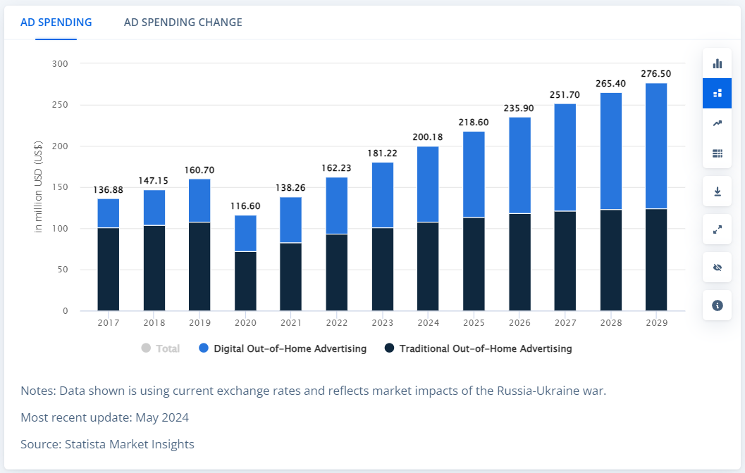 However, recent data suggests a shift in this perception. Supported by owned data and research by Statista, Malaysian brand owners are increasingly recognizing the value and potential of OOH advertising strategies. This growing awareness has undoubtedly contributed to the observed rise in OOH advertising trends across various formats.