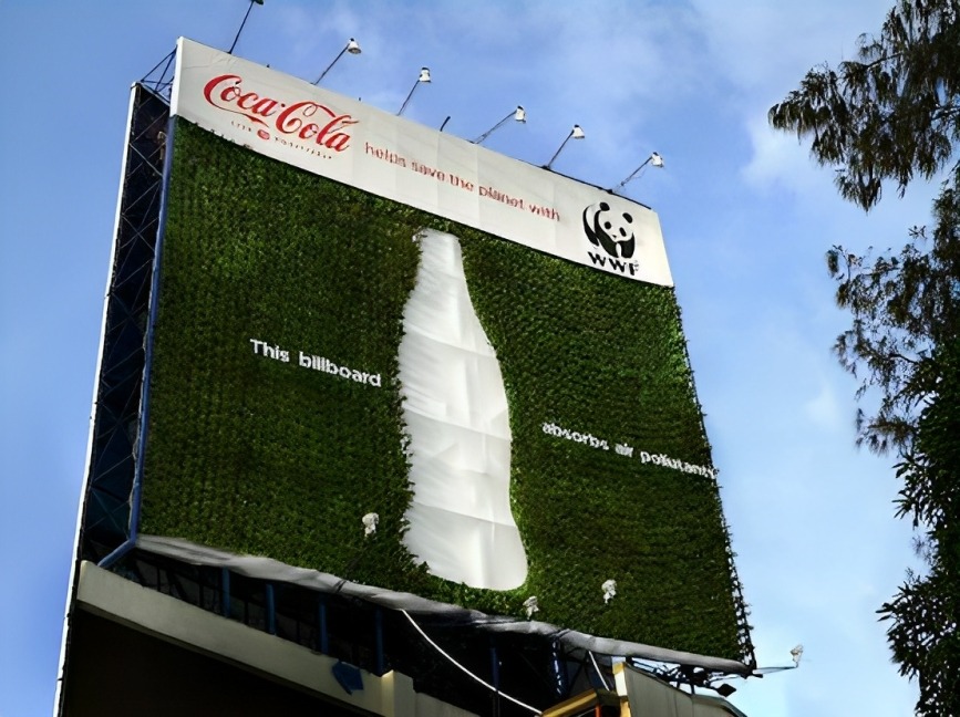 Cola-Cola Philippines and WWF Philippines collaborated to create a billboard made of small trees! They delivered a serious message hilariously by saying "This billboard absorbs air pollutants".