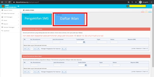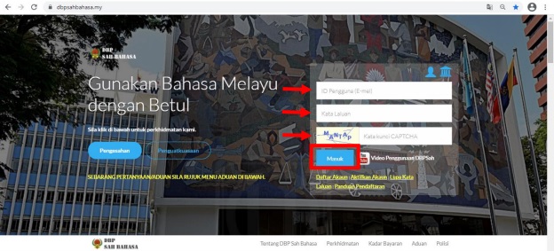 Step 1: Visit the Dewan Bahasa Pustaka (DBP) website to create an account, either for individual or corporate use.